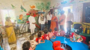 चिमुकल्या सोबत संवाद साधताना मान्यवर